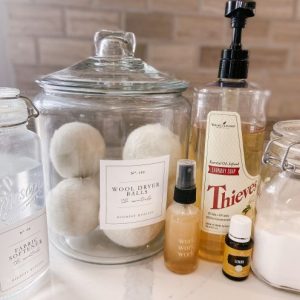 Split thieves laundry soap into 2 pump bottles (32 oz size) or 1 pump bottle (64 oz size).